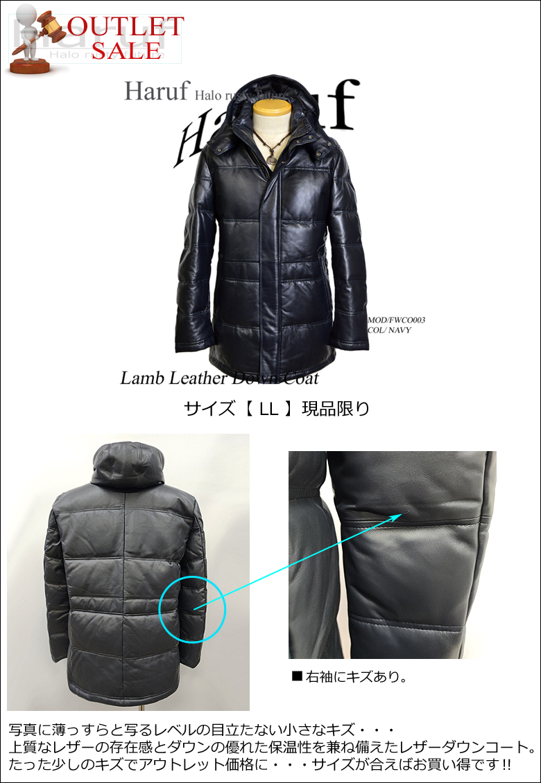 【50%OFF】【アウトレットセール】メンズ 本物ダウンコート 本革 ネイビー LLサイズ NO2924