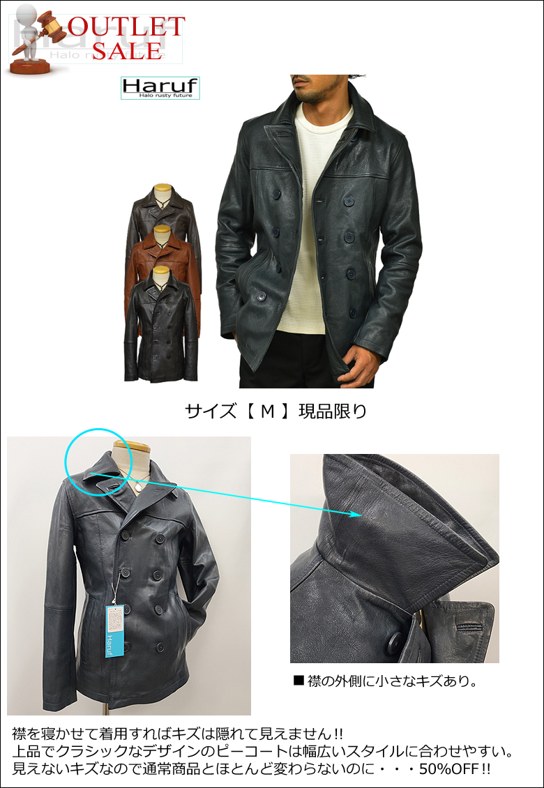 【50%OFF】【アウトレットセール】メンズ ピーコート レザージャケット 本革 ネイビー Mサイズ NO2951