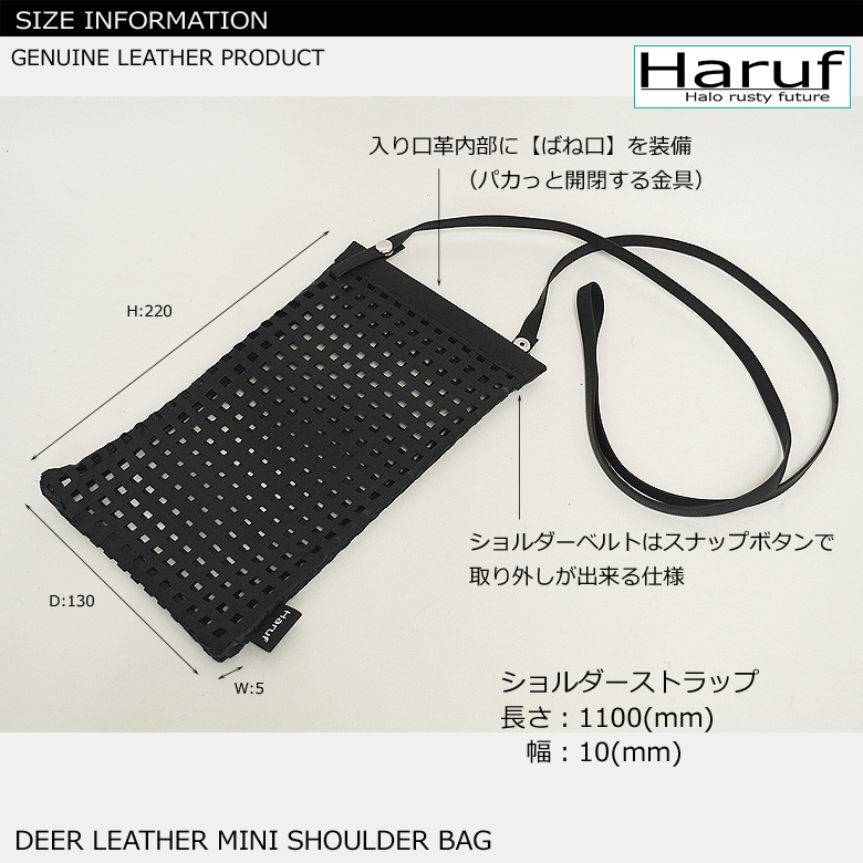 丈夫なディアスキンで作られた軽量ミニショルダーバッグです。