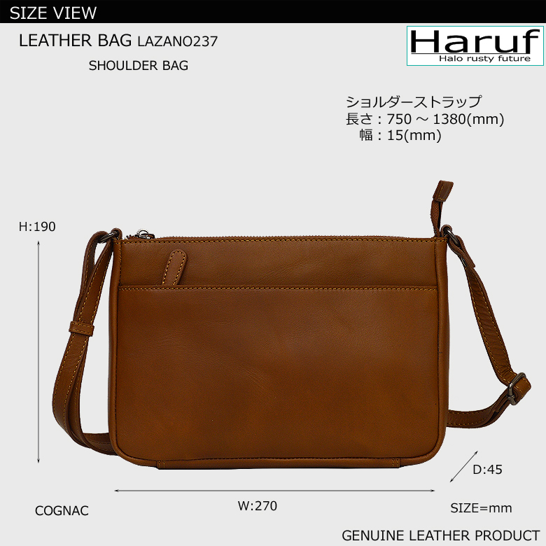 普段使いから旅行まで使える小さめサイズの本革レザーショルダーバッグ。