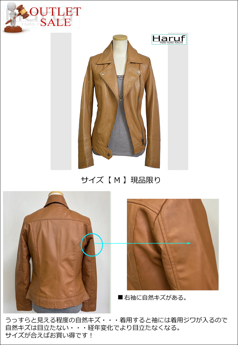 【アウトレットセール】 レディース レザージャケット 本革 ラムレザー キャメル Mサイズ NO2030
