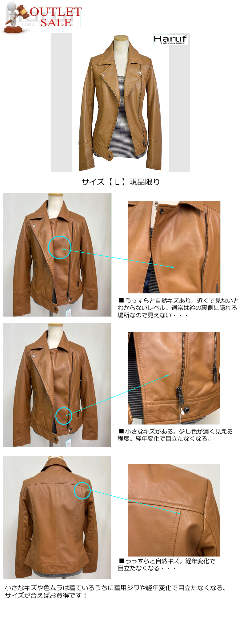 【アウトレットセール】 レディース レザージャケット 本革 ラムレザー キャメル Lサイズ NO2033