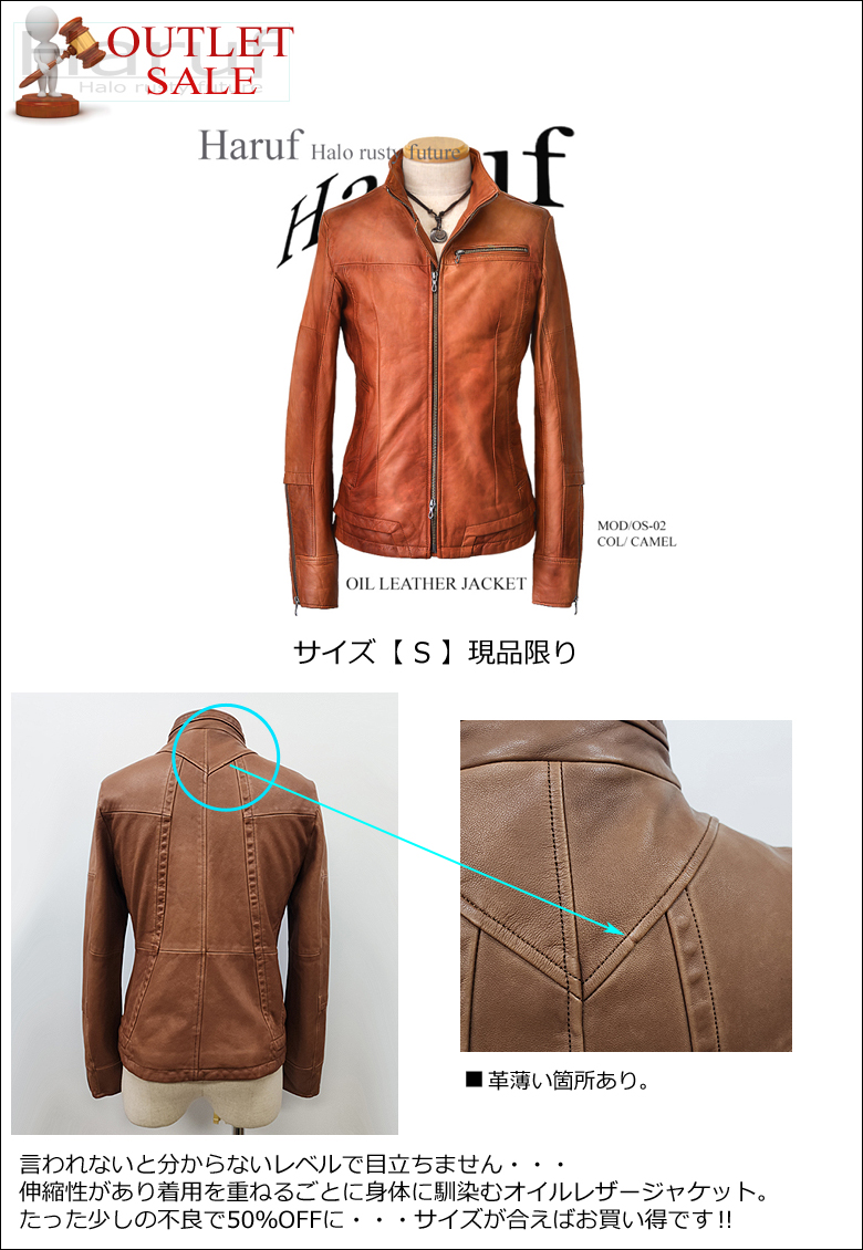 【50%OFF】【アウトレットセール】メンズ シングルライダース レザージャケット 本革 キャメル Sサイズ NO2933