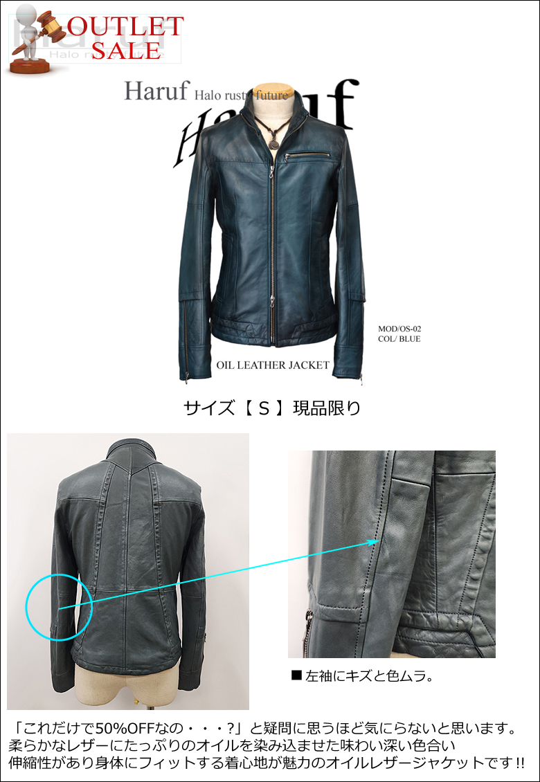 【50%OFF】【アウトレットセール】メンズ シングルライダース レザージャケット 本革 ブルーグリーン Sサイズ NO2940