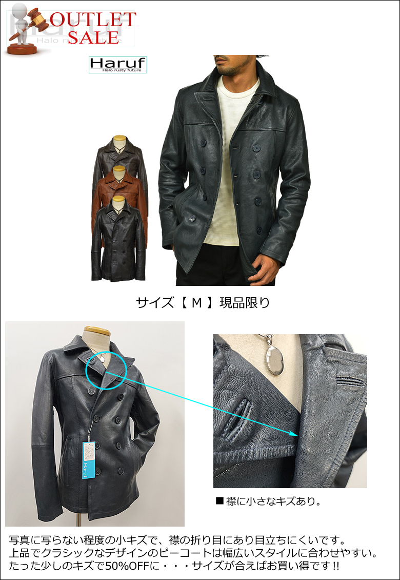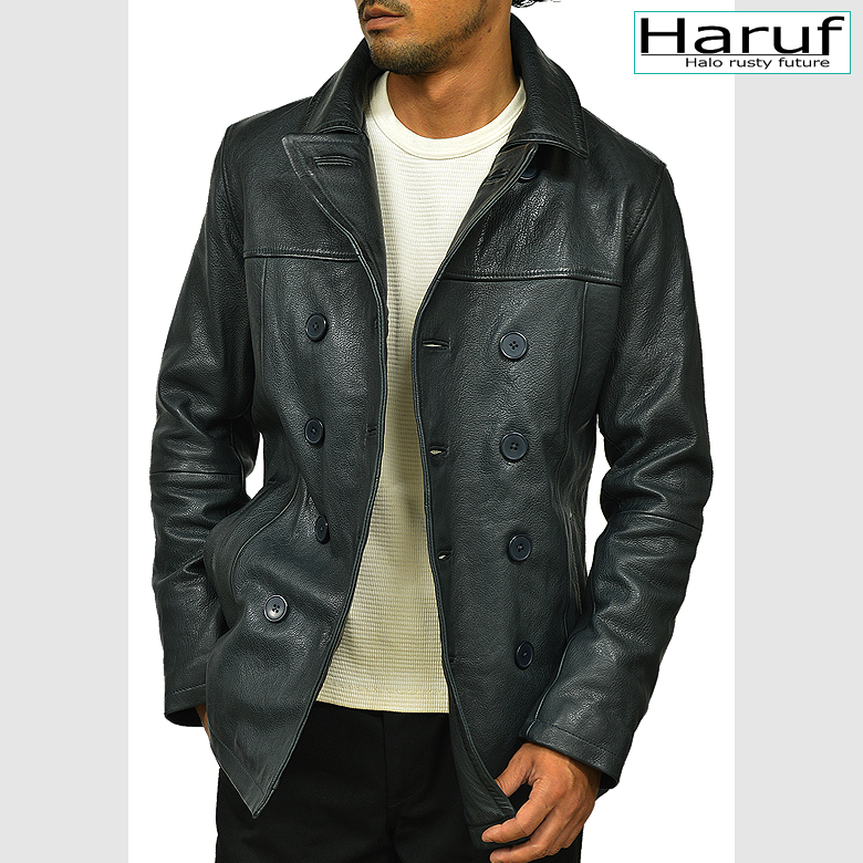 【50%OFF】【アウトレットセール】メンズ ピーコート レザージャケット 本革 ネイビー Mサイズ NO2952