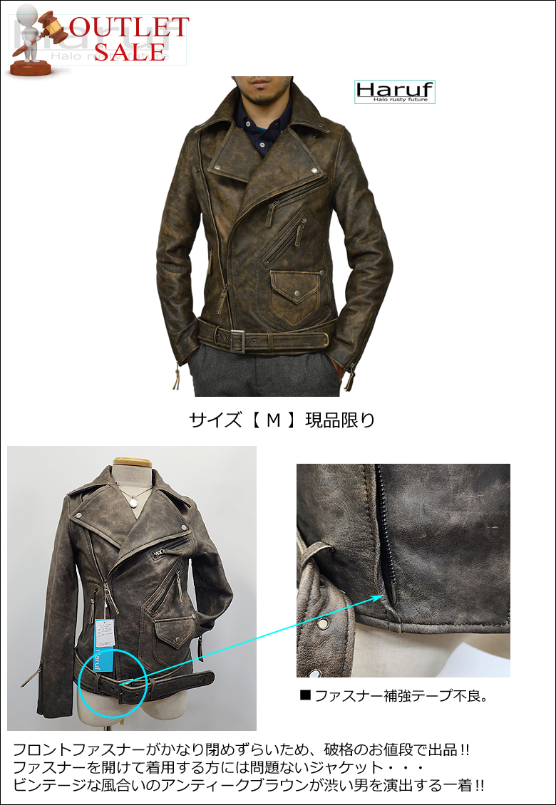 【超お得】【アウトレットセール】メンズ ダブルライダース レザージャケット 本革 アンティークブラウン Mサイズ NO2981